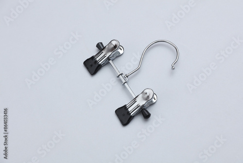 clothes, hanger, object, clothing, rack, metal, trousers, clip, hook, clothes rack, retail, coat, household, empty, pant, hang, shop, boutique, equipment, single, sale, style, accessory, fashion, topview, white