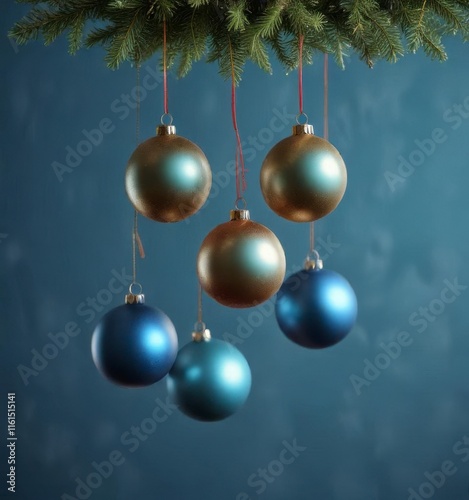 Hanging Christmas ornaments on blue background, Blue Christmas Decorations, Christmas Tree Ornaments