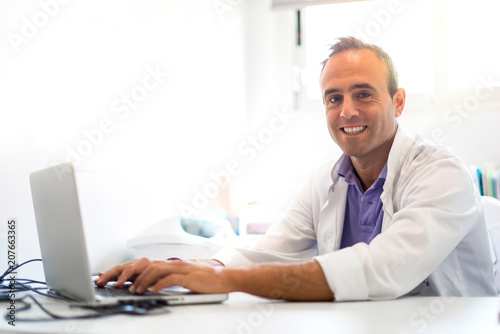 adult, apothecary, background, business, care, caucasian, chemist, clinic, coat, communication, computer, display, doctor, happiness, happy, health, healthy, hospital, indoor, keyboard, laboratory, laptop, laugh, male, man, medicals, man, monitor, notebook, occupation, people, pharmaceutical, pharmaceutic, apothecary, pharmacy, portable, prescription, professional, scientist, service, smile, smiling, staff, tech, technology, treatment, white, working, young