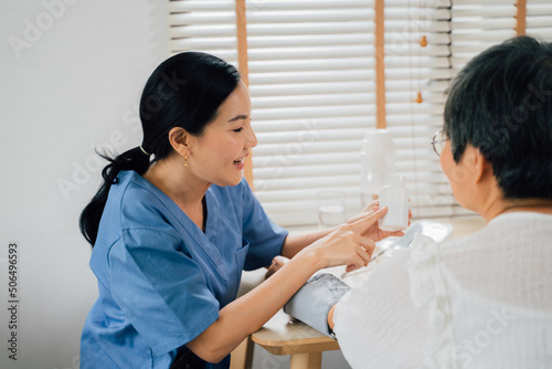 medicine, senior, elderly, nurse, asian, support, portrait, retirement, professional, treatment, clinic, assistance, nursing, old, patient, pill, smile, measure, blood, pressure, home, female, aged, bottle, monitor, digital, help, point, visit, caregiver, table, geriatric, happy, health care, cheerful, treat, control, positive, pensioner, desk, test, recovery, check, uniform, aid, remedy, appointment, heal, daylight, therapy