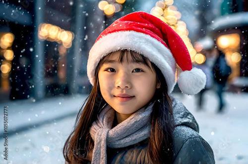 christmas, children, santa, hat, girl, asia, winter, snow, holiday, family, festive, happy, outdoors, celebration, christmas lights, sibling, smiling, cosy, snowflake, cold, holiday spirit, joyful, holiday season, night, fun, festive attire, childhood, warmth, seasonal, friendship, winter landscape, cheerful, tradition, nightlight, bokeh, happiness