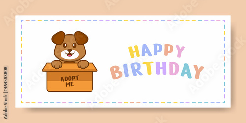 Happy Birthday banner with Cute dog cartoon character. Vector Illustration