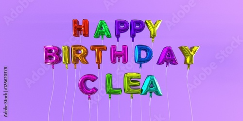 Happy Birthday Clea card with balloon text - 3D rendered stock image. This image can be used for a eCard or a print postcard.