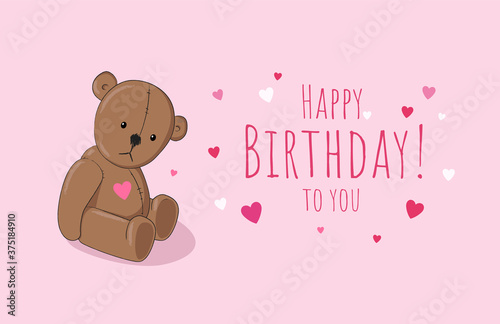 happy birthday, teddy bear, adorable, cuteness, childish, congratulation, heart, character, lovely, little, postcard, template, banner, decoration, animal, art, baby, background, bear, birthday, card, cartoon, celebration, cute, day, design, fun, girl, graphic, greeting, happy, nubes, holiday, illustration, joy, children, love, pink, romantic, sweet, teddy, text, toy, vector, you