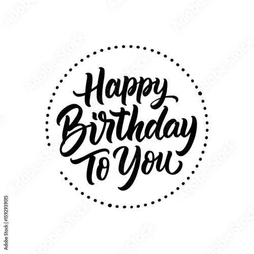 Happy birthday to you handwritten calligraphy with dotted circle transparent background