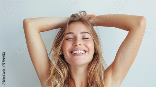 joy, happiness, freedom, cheerfulness, positivity, youthful, fun, modern, closeup, portrait, laughing, blonde hair, white teeth, skin, expression, emotion, cheerful, beauty, casual attire, delight, ecstasy, enjoyment, glee, pleasure, well-being, confidence, lively, high-coloured, blithe, easygoing, genuine, real people, lifestyle, one person, woman, bliss