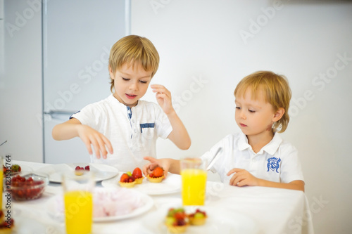 boy, fun, kitchen, family, home, children, sibling, table, 2, white, caucasian, healthy, lunch, nourishment, happy, girl, happiness, smiling, portrait, cute, eat, adorable, together, little, food, friends, toddler, son, bright, casual attire, vegetable, positive, love, daughter, woman, smart, joy, looking, camera, man, pretty, brother, cooking, cookery, juice, fruit, berry, strawberry, sweet, breakfast
