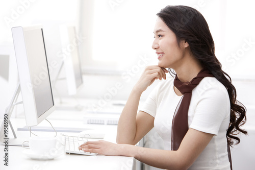 chinese, missy, office, businesswoman, desktop pc, business, professional occupation, occupation, expertise, studio, asian ethnicity, people, leisure, one person, woman, female, adult, adults only, young adult, office worker, businessperson, window, bright, clean, neat, cheerful, concentration, confidence, connect, connection, contemplation, convenience, effort, fashion, happiness, cyberspace, joy, lifestyle, modern, enjoyment, plan, success, technology, vitality, wireless technology, computer, desk, office supply, casual clothes, cravat, working, thinking, creativity, looking away, smiling, toothy smile, sitting, china, east asia, asia, beijing, indoor, day, photo, color image, half face, waist up, copy space, horizontal