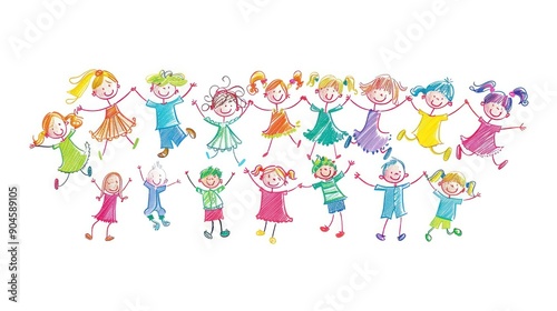 children, children, group, drawing, illustration, happy, joyful, smiling, playful, colourful, friendship, togetherness, community, fun, cartoon, doodle, joy, childhood, youth, innocence, cheerful, bright, whimsical, cute, adorable, positive, optimistic, celebration, celebratory, celebrate, diversity, inclusion, love, care, sharing, holding, hand, together, teamwork, oneness