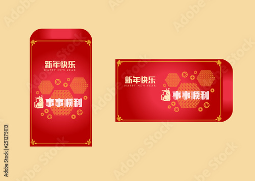 Happy chinese new year 2020, 2032, 2044, year of the rat, Chinese characters xin nian kuai le mean Happy New Year, shi shi shun li mean Prosperity Year. ​
