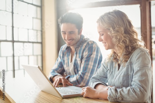 young adult, man, male, caucasian, teenage, girl, female, using, typing, laptop, notebook, technology, computer, wireless, creative, business, casual attire, cool, studio, office, team, colleague, job, profession, professional, career, occupation, teamwork, brainstorm, brainstorming, hip, briefing, style, smiling, sitting, discussing, businessman, co-worker, businessperson, working, cheerful, attractive, fair hair, blond, light hair, pretty