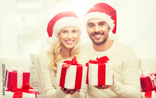 home, happy, couple, christmas, new year, gift, holiday, man, woman, santa, hat, holding, showing, christmas, christmas, present, box, surprise, joyful, smiling, people, cheerful, merry, lovely, cute, nice, girl, winter, celebration, december, seasonal, lifestyle, together, sofa, couch, sitting, latin, hispanic, boyfriend, girlfriend, leisure, concept, family, living, room, indoor
