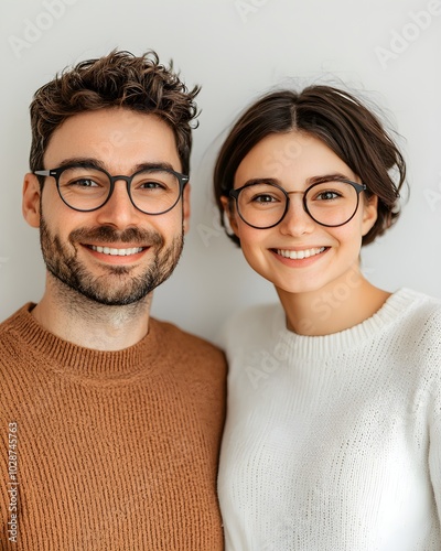 couple, smiling, happy, goggles, casual attire, attire, portrait, young, friendship, joyful, clothing, indoor, affection, human relationships, close, modern, style, cheerful, expressive, positive, connection, loving, emotion, face, interaction, comfort, cosy, light, smile, contentment
