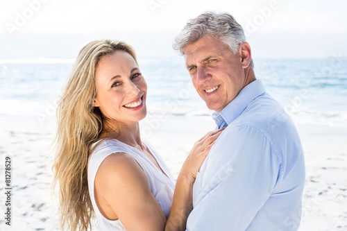 woman, female, caucasian, mature adult, man, male, summer, holiday, sunny, vacation, attractive, pretty, beautiful, coastline, shore, beach, blond, fair hair, long hair, grey hair, lifestyle, leisure, spare time, free time, happiness, free, freedom, carefree, escapism, love, affection, couple, human relationships, together, hugging, embracing, happy, smiling, cheerful, portrait, outdoors