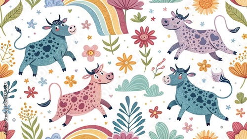 cow, whimsical, pattern, background, illustration, art, design, colourful, vibrant, design element, graphic design, poster, wallpaper, print, card, invitation, party, children, children, farm, cute, cartoon, playful, poster print, background image, digital artwork, creative, modern, abstract, texture, decorative, greeting card, printable, digital print