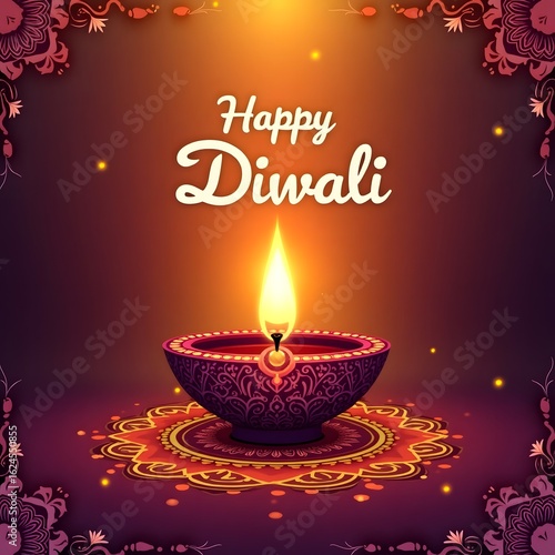 Happy Diwali Festival of Lights with Burning Diya and Mandala Art - illustration image suitable for greeting cards, fb post, banner