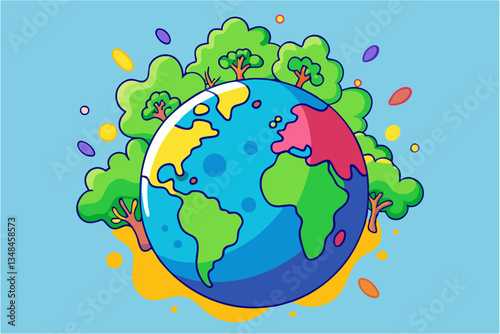 Happy Earth Day Concept Earth with green trees