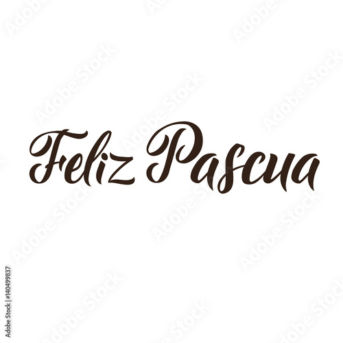 Happy Easter hand lettering modern calligraphy style. Vector Illustration. Greeting Card Spanish Text Templates on white background.