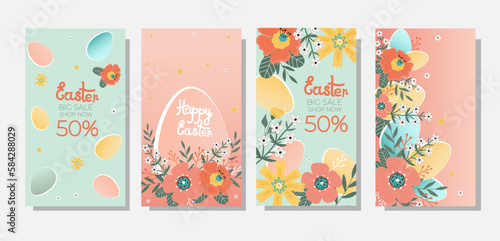 set, sale, banner, floral, easter egg, easter, flower, discount, postcard, plant, flier, spring, pink, greeting, happy, celebration, holiday, special offer, culture, illustration, promotion, design, flower, decoration, card, template, traditional, vector