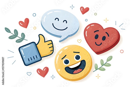 thumb up, speech bubble, heart, happy, positive, communication, approval, like, feedback, joy, celebration, illustration, graphic design, cartoon, cute, friendly, cheerful, yellow, red, blue, green, white background, simple