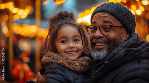 family, portrait, children, father, daughter, christmas, market, holiday, winter, joy, smile, love, warmth, happiness, togetherness, celebration, festive, light, people, street, decoration, fun, adorable, happy, cheerful, smiling, cute, laugh, affection, tenderness, joyful, sweet, gentle, caring, affectionate, warm, closeup