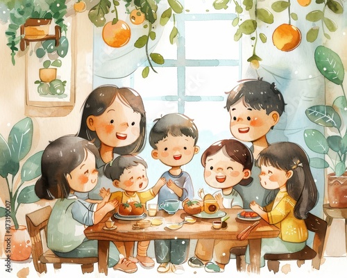 family, meal, home, plant, natural, light, sunny, happiness, togetherness, dine, hugs, prayer, table, cartoon, peaceful, cherish, partiality, sunshine, share, laughter, simple, bliss, window, comfort, feast, children, festive, eltern, cosy, support, grateful, cheerful, good, value, vibe, calmness, pleasure, puckered, surround