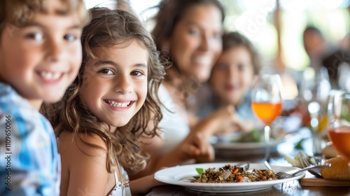 family, children, girl, boy, happy, smiling, meal, food, eatery, dining, togetherness, lunch, dinner, eating, children, sibling, mother, father, table, plate, delicious, healthy, cheerful, joyful, fun