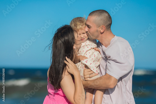 sea, baby, beach, beautiful, blond, blue, boy, care, caucasian, children, childhood, father, daughter, embrace, family, father, female, fun, girl, happiness, happy, happy family, harmony, healthy, children, kiss, laughing, love, man, mother, mother, ocean, eltern, people, pretty, relax, resort, sky, smile, summer, three, toddler, together, togetherness, vacation