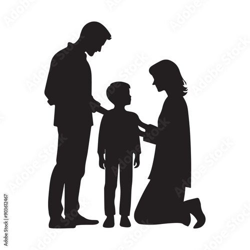 Happy Family Silhouette - Family Clipart - Family with Three Member illustration
