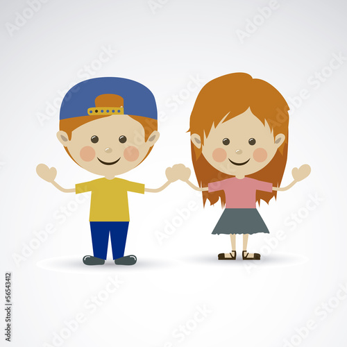 happy, friends, children, girl, boy, together, love, boyfriend, girlfriend, people, man, woman, female, hat, male, up, hand, smile, body, hair, arm, white, person, clothes, happiness, felicity, vector, illustration, draw, design, background, face, human, head, paint, colours, graphic, young, model, pattern, isolate, concept, comic, standing, flushed, open, greet