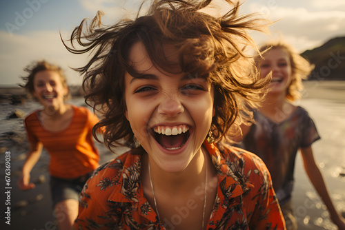 Happy friends having fun on beach