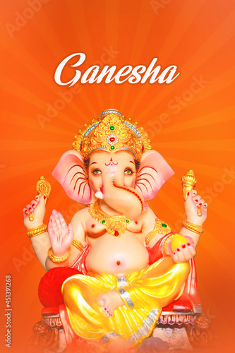 Happy Ganesh Chaturthi Greeting Card design with lord ganesha sclupture