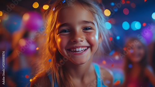 girl, children, happy, fun, party, celebration, birthday, confetti, light, joy, smile, laugh, children, childhood, festive, event, cheerful, playful, adorable, cute, sweet, pretty, young, little, portrait, happiness, excitement, colourful, vibrant, bokeh, background, balloon, friends, together, holiday, memory, innocence, carefree, glistering, sparkle