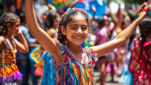 girl, happy, smiling, festival, celebration, joyful, parade, dancing, colourful, dress, costume, bright, children, young, fun, event, party, culture, tradition, people, crowd, street, energy, enthusiastic, cheerful, positive, laughter, joy, excitement, vibrant, passionate, enthusiasm, celebratory, optimistic, festive, celebrate, carnival, youth, youthful