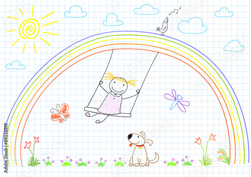 teeter, children, smiling, happiness, swing, girl, expressing, walking, positivity, cheerful, leisure, summer, fun, childhood, smile, dog, children, painting, children, joy, notebook, painted, sketching, page, rainbow, doodle, drawing, vector, butterfly, dragonfly, sun, bird, flower, cloud