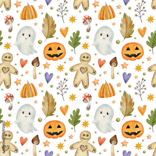 Happy Halloween. Watercolor seamless pattern on a white background.