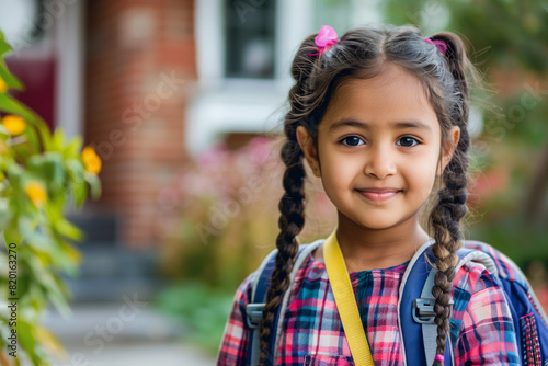Happy Indian Girl with Backpack Outside Ready for Back to School or Hiking Adventure