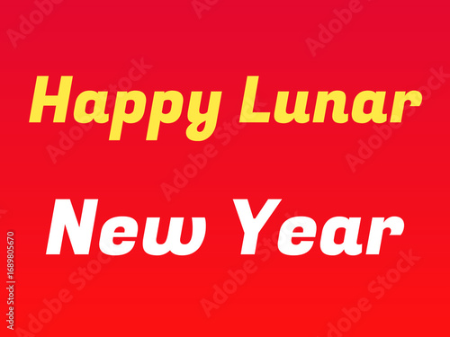 Happy Lunar New Year festive typography. Vibrant yellow and white text on a bold red background for celebrations