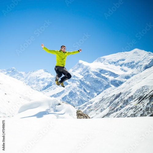 man, success, motivation, climber, snow, winter, hiking, young, top, summit, happy, climbing, mountain, people, person, mountaineer, jump, jumping, happiness, landscape, outstretched, looking, achievement, active, adult, adventure, annapurna, autumn, beautiful, camping, exercise, explore, fitness, fun, gear, green, healthy, high, himalaya, male, nature, nepal, outdoors, smile, sun