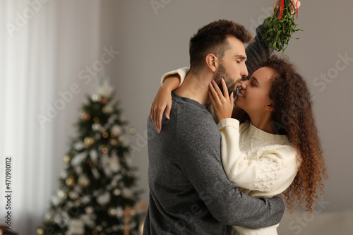 background, woman, adult, female, young, male, man, american, african, caucasian, people, couple, afro, kissing, house, indoor, home, room, happy, smiling, interracial, bunch, mistletoe, boyfriend, girlfriend, lovely, christmas, decorated, beautiful, leaf, traditional, season, holiday, event, new, festive, merry, christmas, year, december, winter, romantic, together, human relationships, hugging, celebration, tree, holding, decor