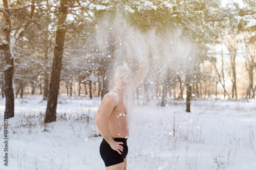 man, senior, winter, cold, resistance, sport, training, bare, torso, snow, active, activity, athlete, body, caucasian, challenge, exercise, exposure, fit, fitness, forest, fun, guy, happy, health, healthy, leisure, lifestyle, male, mature, naked, outdoors, park, person, season, shirtless, snowy, sport, underclothing, washing, wellness, physical exercise, throwing, copy space, blank space, empty space