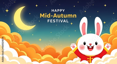 Happy Mid-Autumn Festival Cute Rabbit in Night Sky