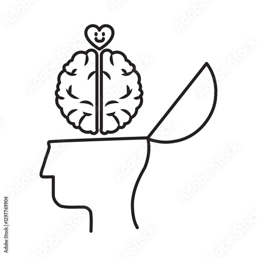 happy, mind, brain, nubes, icon, mental, wellness, emotion, positivity, love, clarity, creativity, happiness, linear, outline, line art, design, isolated, illustration, vector