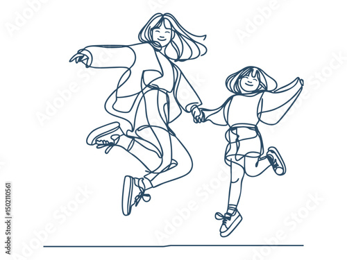 line, eltern, line art, outline, mother's day, single line, continuous, drawing, hand-drawn, minimalism, vignetting, illustration, playing, people, mother, playful, female, woman, daughter, children, happy, mother, girl, person, children, bonding, family, motherhood, happy family