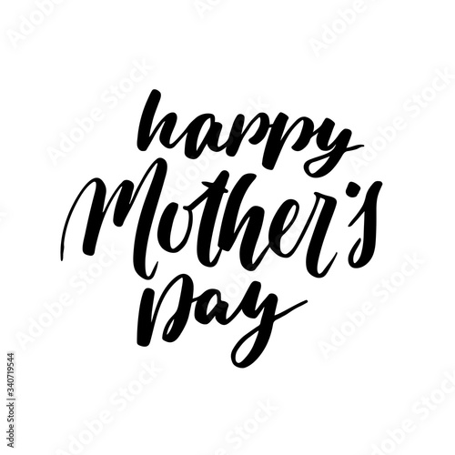 Happy Mother s Day Greeting Card. Black Calligraphy Inscription. Modern hand lettering design postcard. Brush handwritten text isolated on white background.