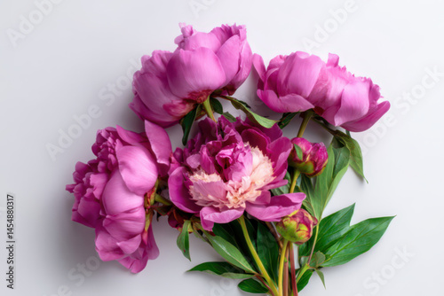 Happy Mother's Day. Bouquet of beautiful peony flowers on white background