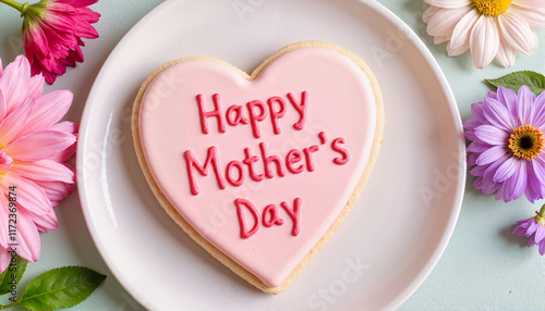 Happy Mother's Day cookie with flowers on pastel background