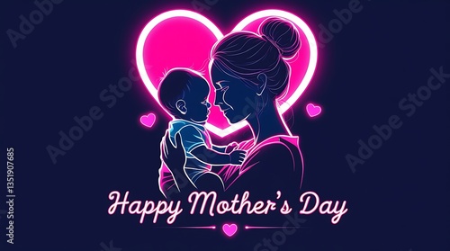 Happy Mother's Day Illustration – Loving Mother and Child with Floral Design