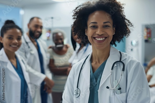 doctor, medicals, team, hospital, smiling, health, professional, health care, staff, corridor, confident, friendly, diverse, group, woman, man, uniform, coat, stethoscope, nurse, care, men at work, job, clinic, african, asian, caucasian, ethnicity, diversity, occupation, portrait, success, cheerful, adult, collaboration, teamwork, service, practitioner, specialist, medicine, physician, assistant, image, copy space