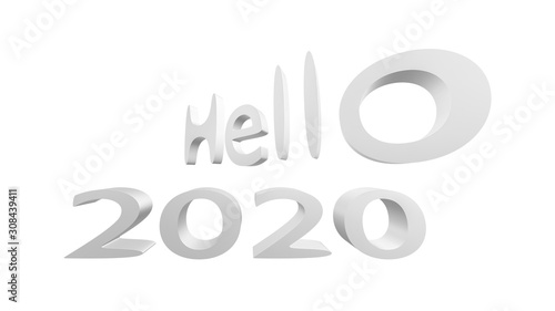 happy new year 2020, 3D ILLUSTRATION of 2020 grey green color in isolated white background. 4k resolution